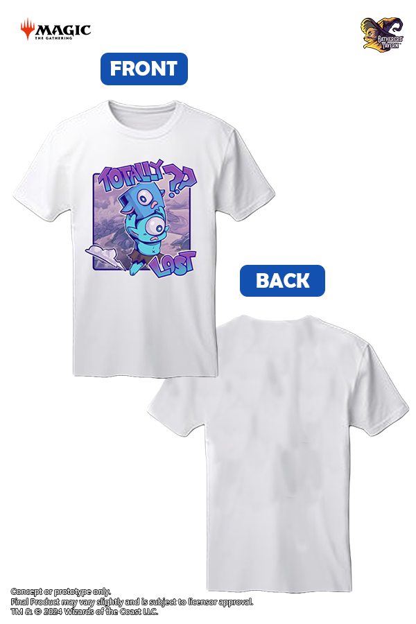 Unlimited Game Studios is excited to present the Fblthp Graphic Tee from Gatherers' Tavern, a quirky and heartwarming tribute to everyone's favorite lost homunculus! This officially licensed design by Wizards of the Coast perfectly captures Fblthp's charm, making it a must-have for fans of whimsical Magic: The Gathering characters.