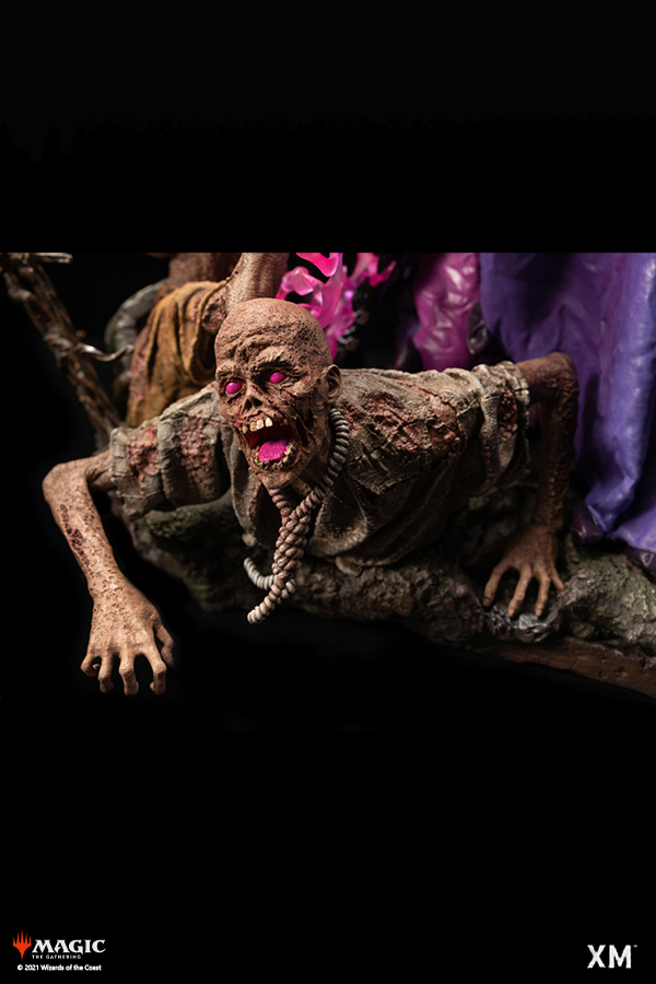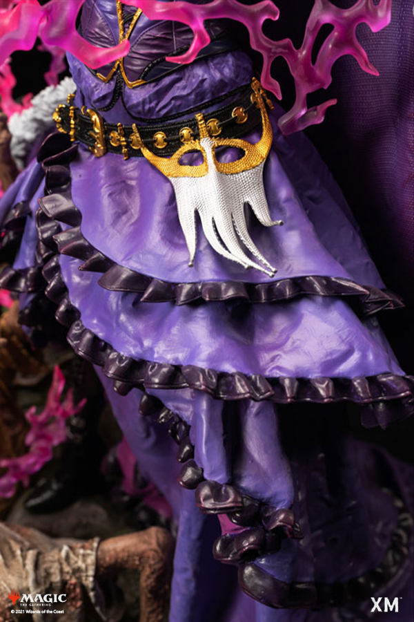 - Intricate Detailing: Every texture and crease of her luxurious dress and coat, along with the delicate lines on her skin, have been meticulously sculpted. The graveyard-themed base complements her dark powers.